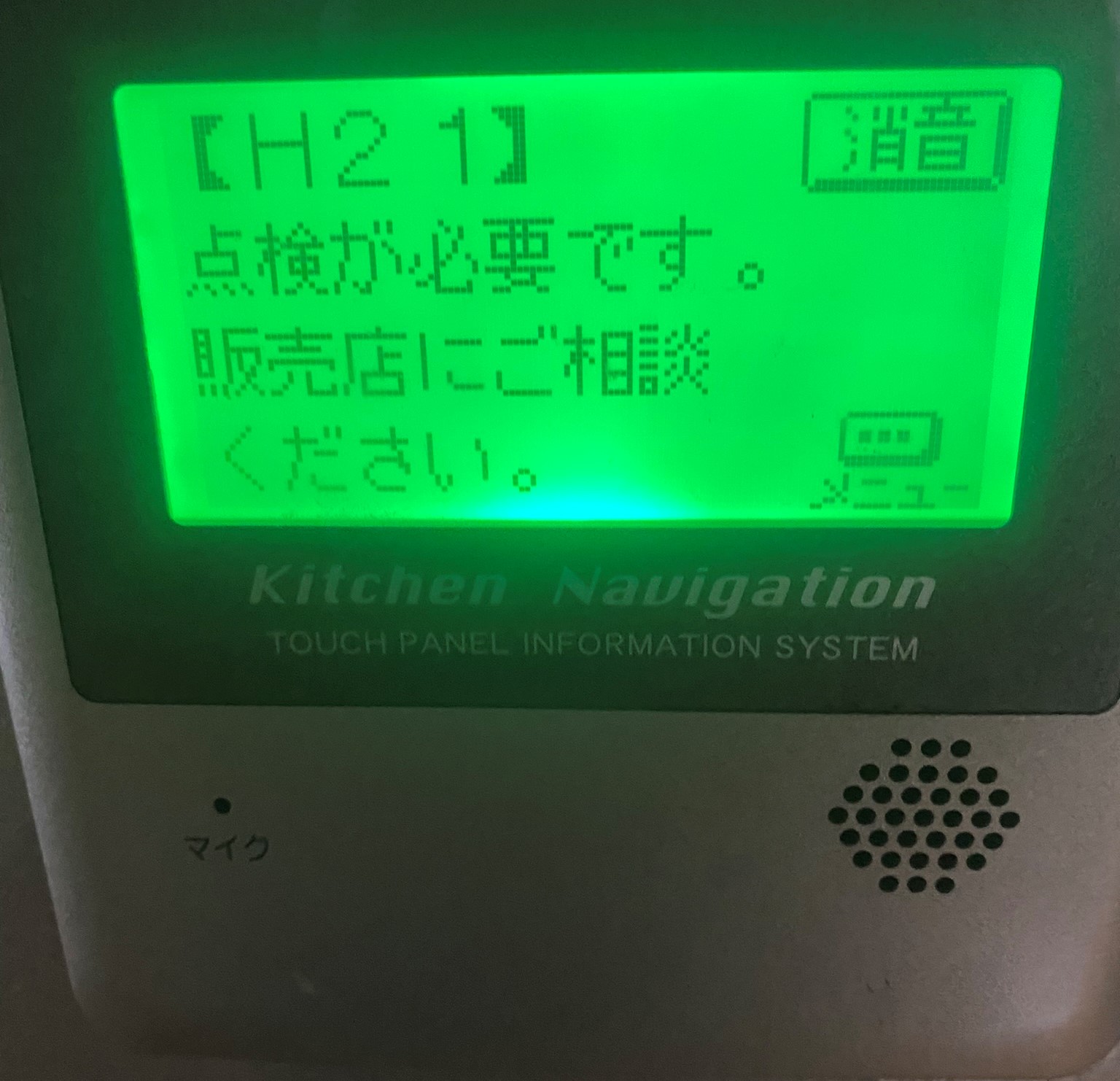 製氷ができない状態です。ナビには、次のようなメッセージが出ていました。